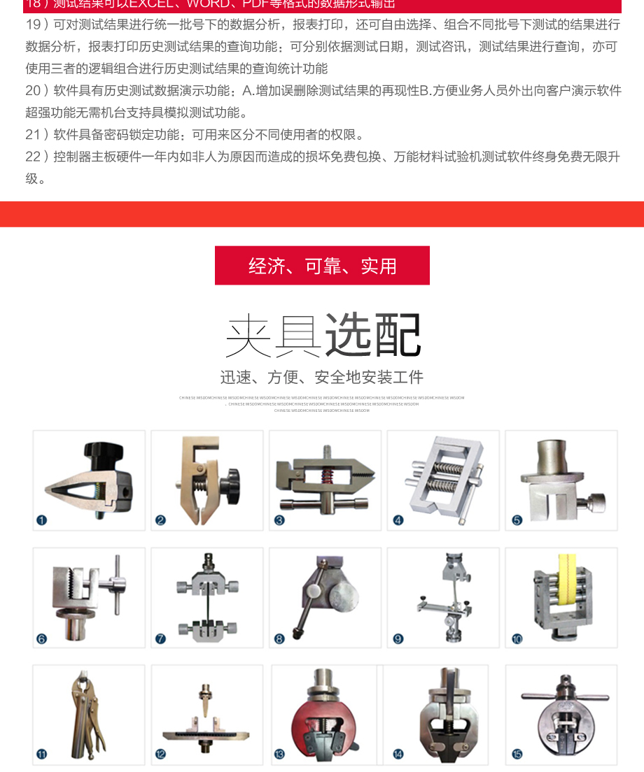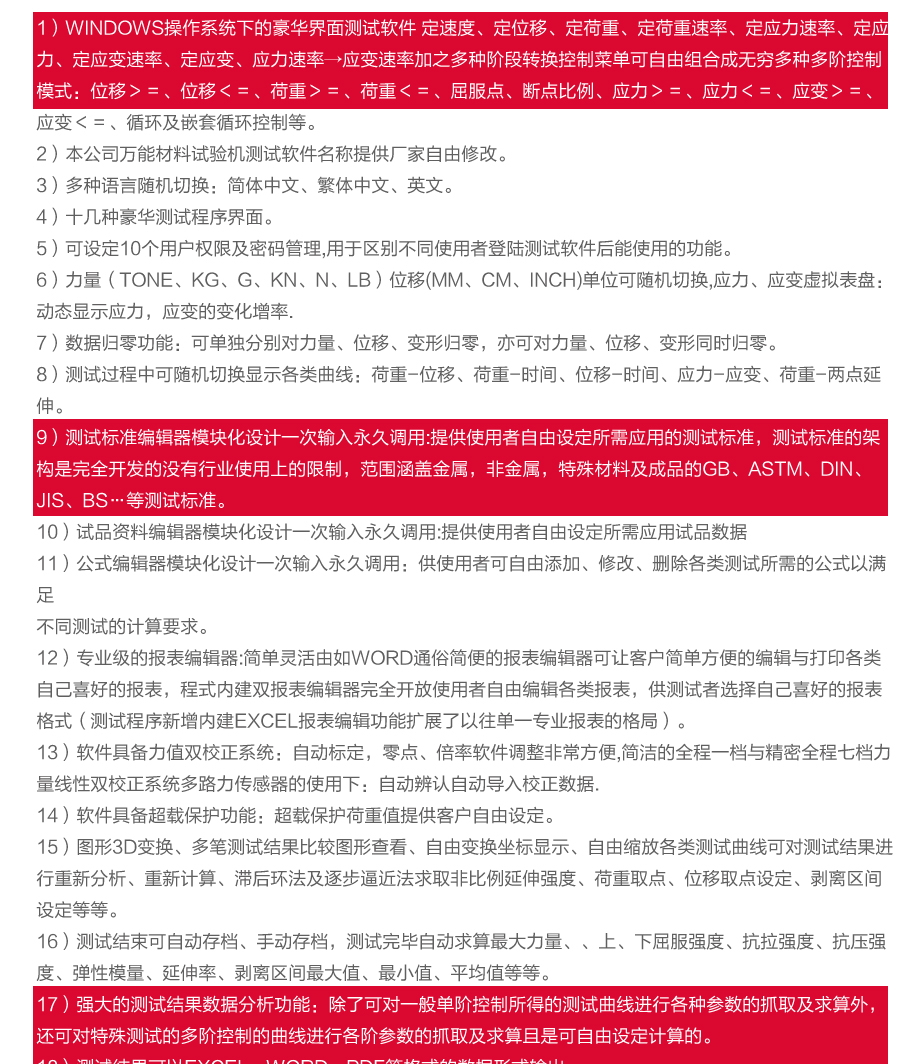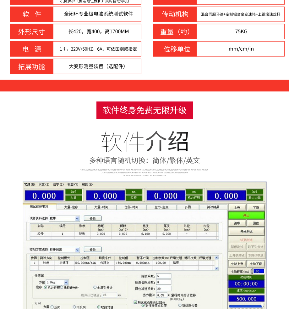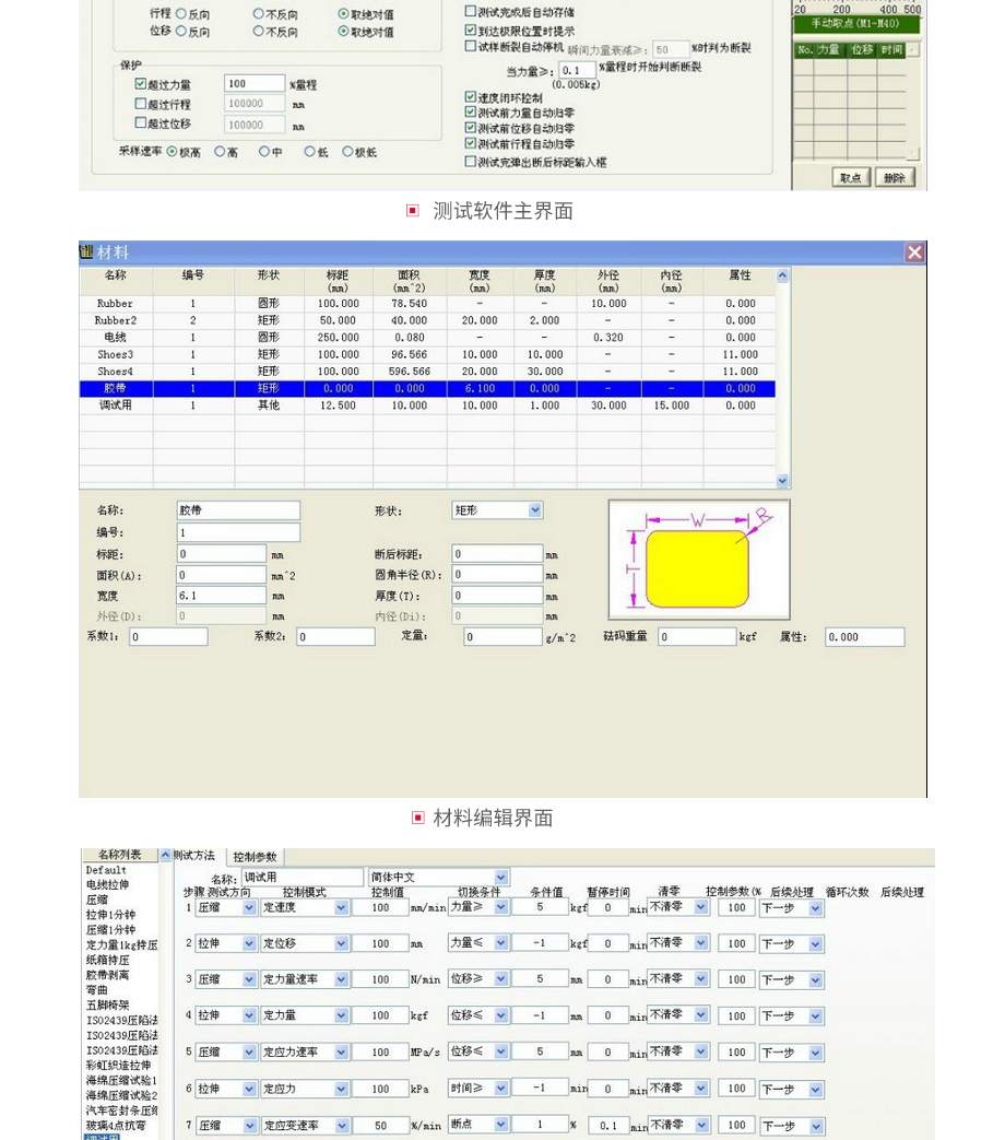 本系列機廣泛用于各類五金、橡膠制品、鞋類、皮革、服裝、紡織、建材、絕緣體、電線、電纜、端子等各類材料。測試其拉伸、撕裂、剝離、抗壓、彎曲、抗剪切、定荷重、定位移...
