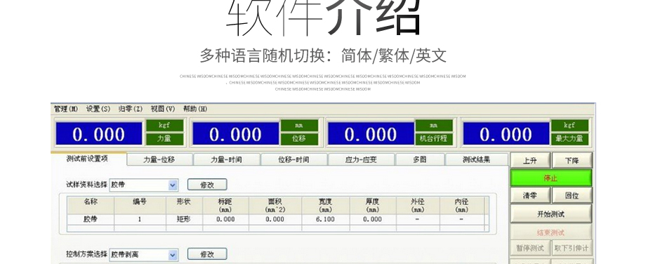 本系列機廣泛用于各類薄膜、五金、橡膠料、紡織、建材、絕緣體、電線、電纜、端子等各類材料。測試其拉伸、撕裂、穿刺、剝離、抗壓、彎曲、抗剪切、定荷重、定位移、三點抗折等試驗...